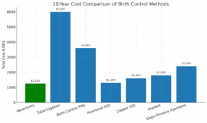 One significant hidden cost to consider is the ongoing expense of temporary contraceptives used by female partners if you don’t get a vasectomy. These fees can add up, even if only $10-30 per month, as your partner may have to use these for decades. Other female contraceptives like the IUD or the implant can cost $1000-1500, and they only last for 3-5 years.